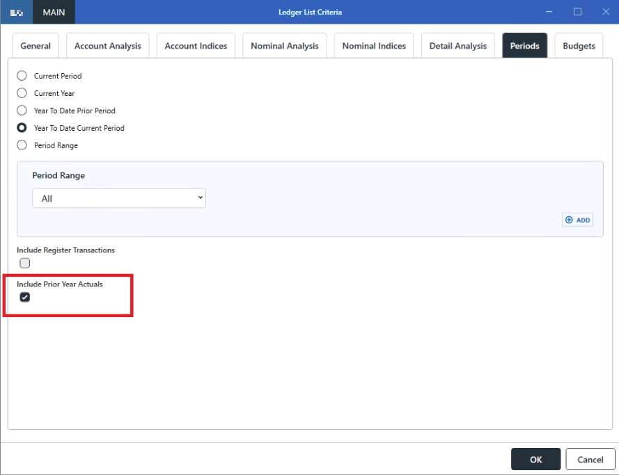 Hi Jamie Thanks for your suggestion. Im pleased to confirm that more recent versions of V7 have a 'Include Prior Year Actuals' option. Selecting this will allow the enquiry to display the prior year actuals in a separate column. Can you see this option?