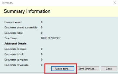 Hi Jamie Thanks for your message. Pressing the Posted Items button on the Summary Information screen will show you the document details that have just been posted. Please see the screenshot below.