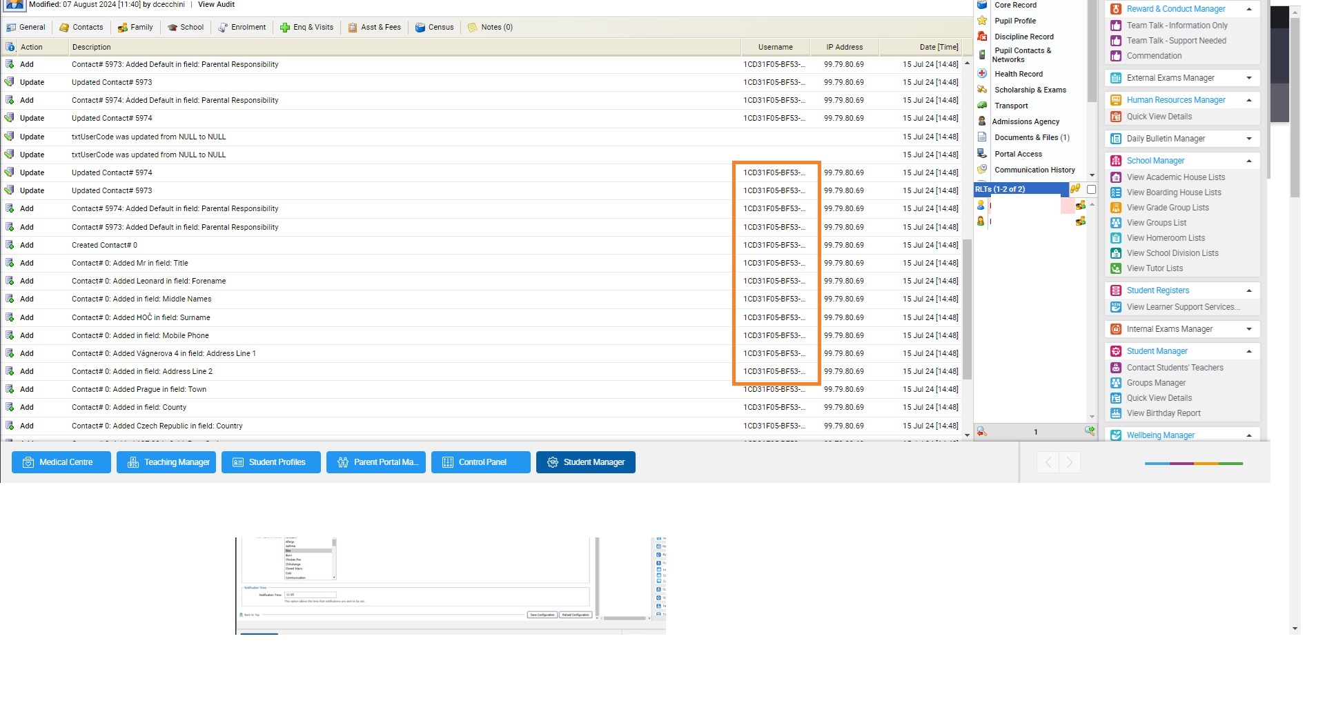 Modify the student and staff audit view to show the api client name rather than the client id in the username field for updates made via third party integrations and the rest api. For example, the audio now shows something like A5733886-E0A9-4CB5-...