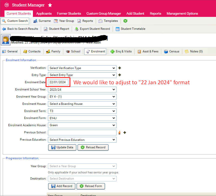 We have identified some inconsistencies in the format of the Control JDatePicker in the Student Manager Module. Please refer to the attached picture for further information.