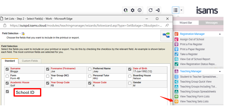All data used by admin teams refers to the unique School ID of the students. At the moment when we want to export sets we have to do this one by one via the students manager selecting one set each time. All teachers and all Heads of Department have to have a list of their classes with the School ID so that administrative tasks (for example for government inspection purposes) doesn't confuse students, especially if they have the same name. Being able to include this in the export of the class lists would save a lot of work.
