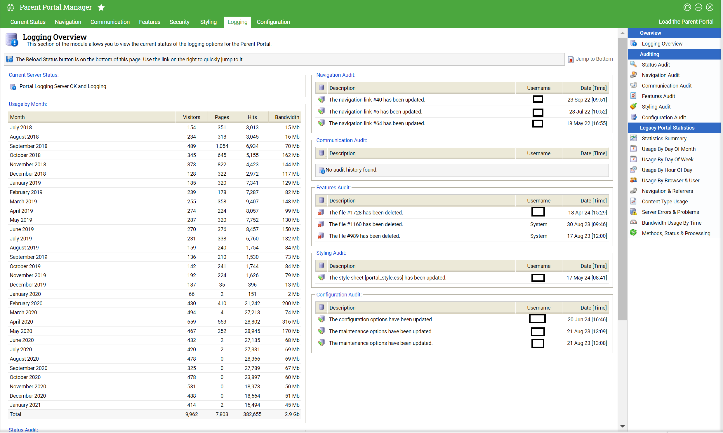 When we check our logging in Parent Portal Manager (screenshot attached) the logs haven't been updated since January 2021.