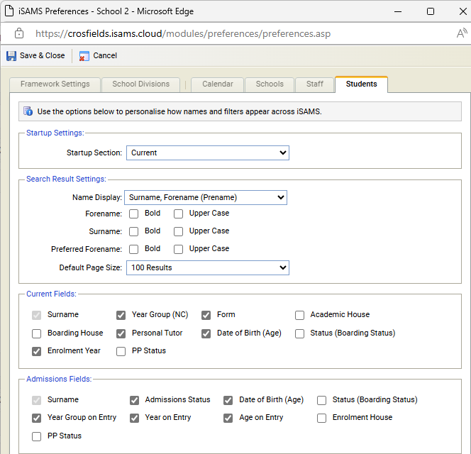 Currently, users can customise the search results by clicking the cog icon in the top-right corner to open their preferences, navigating to the Students tab, and selecting the desired options. However, only a limited number of data fields are available. Could we include additional fields, such as School ID or pupil school email, etc.?
