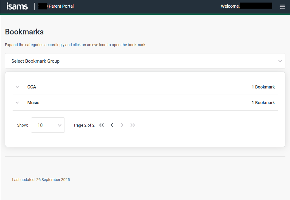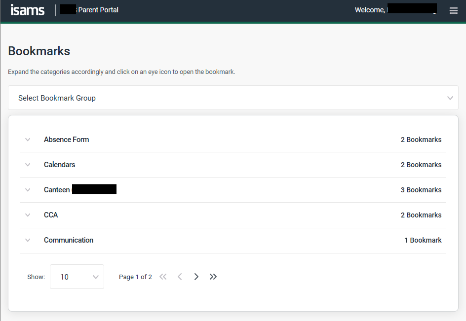 (2) The default 10 bookmarks per page is too little. It would be preferrable to allow use to change the default bookmarks per page for all parents. Issue is compounded as currently bookmarks from one bookmark group will be split over 2 pages.