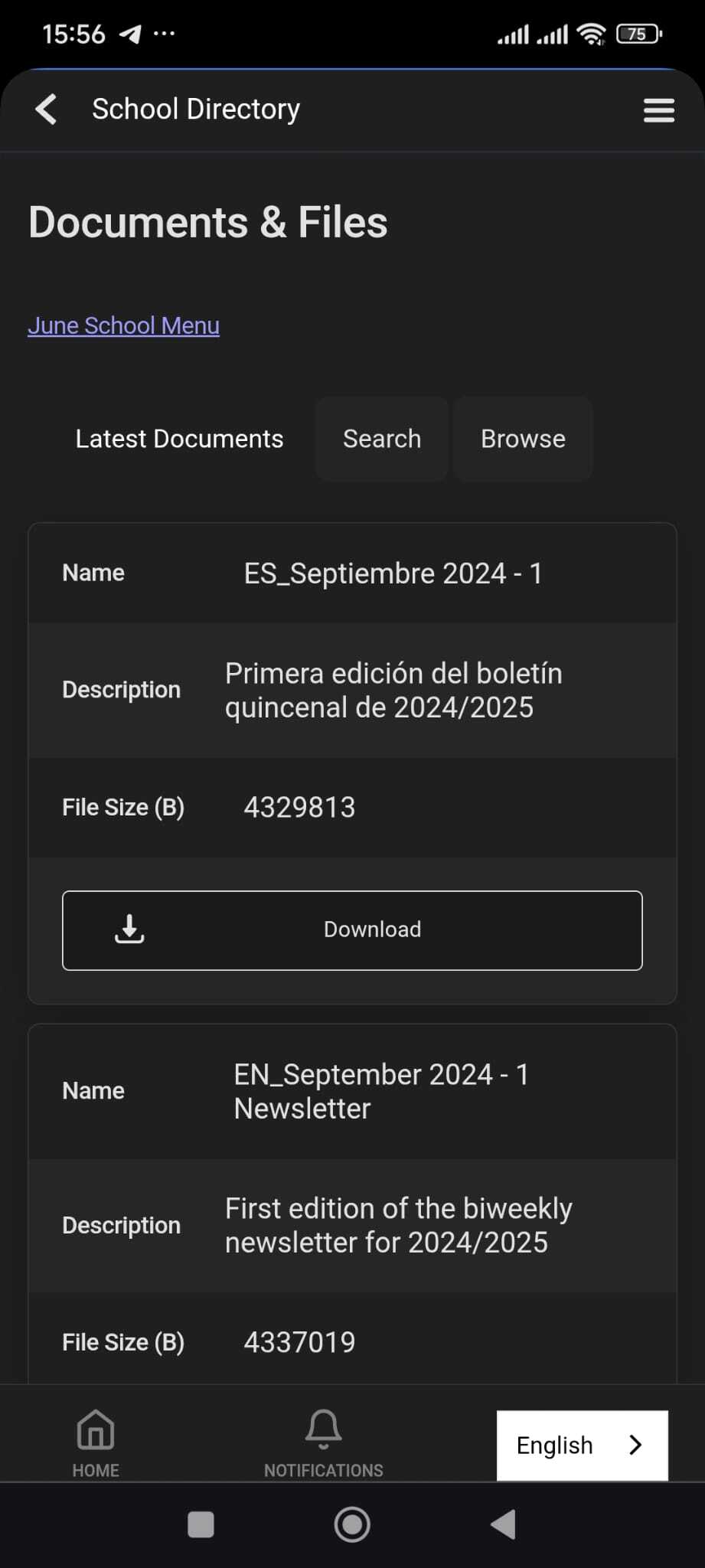 We can organize files by folders in the Parent Portal module, but they don´t appear in the iParent app.