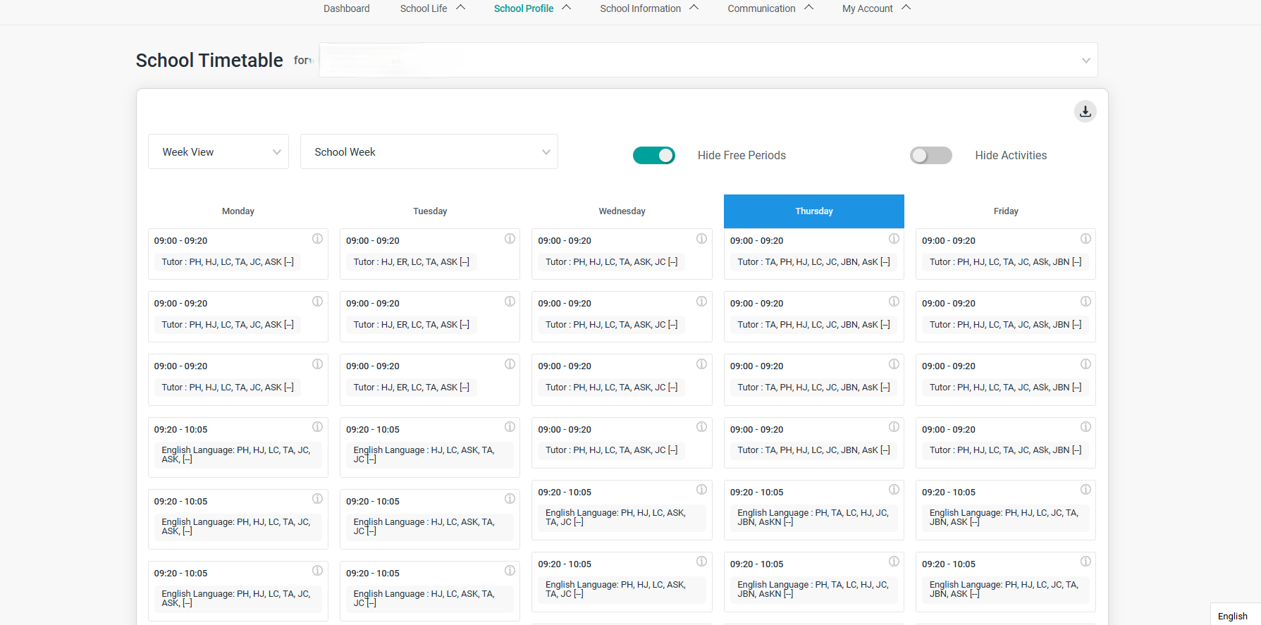 For example, in PDF timetable, there are multiple tutorials (by subject) listed for each tutor/teacher, including their names. However, on the portal, the tutorials are displayed for each period without the tutor/teacher names, resulting in repeated entries of the same tutorial for multiple periods.