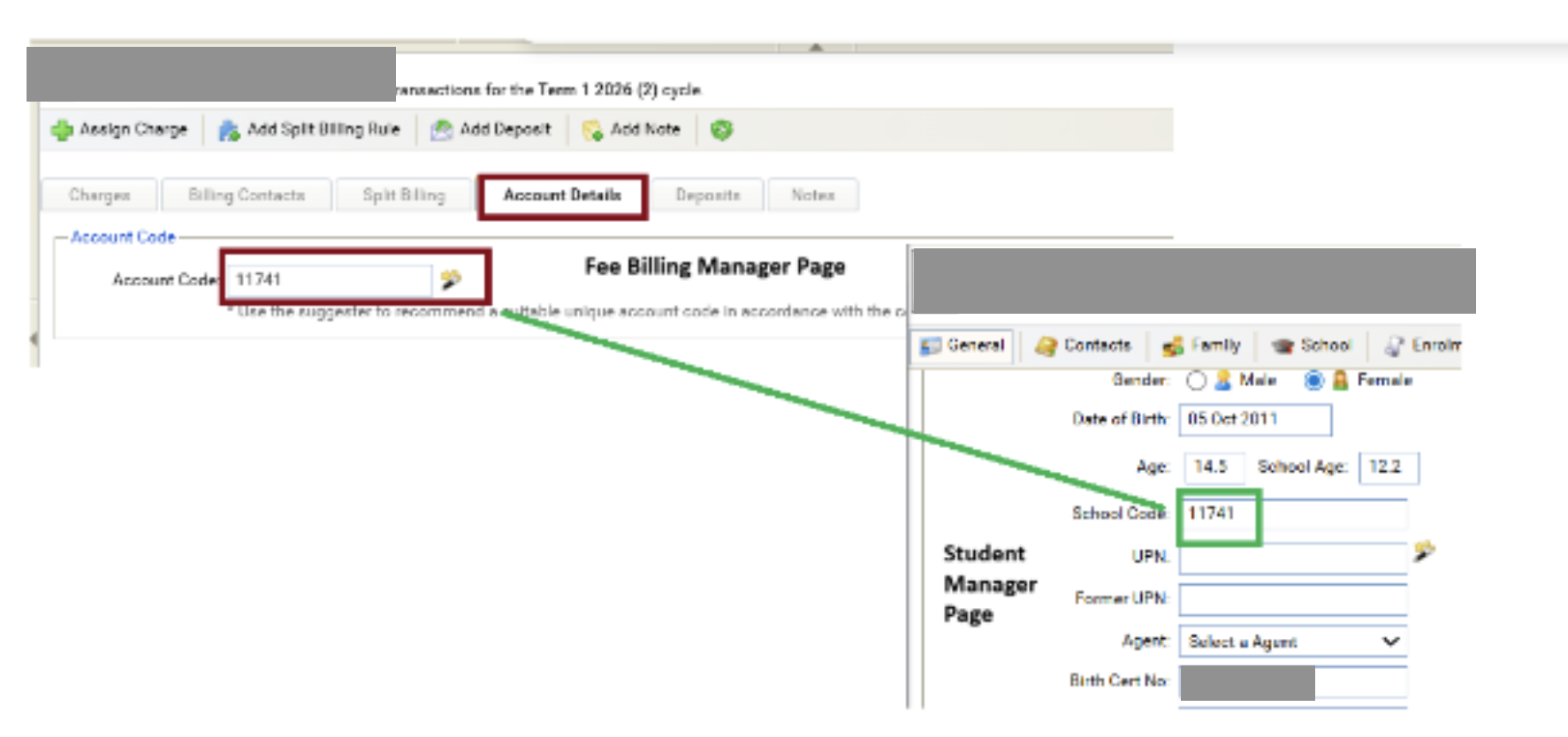 During the billing process under Fee Billing Manager, Account Details tab for a specific student, the Account Code needs to be copied manually by the Finance from Students Manager. Can we have this auto populated to reduce any error from manual copy please?
